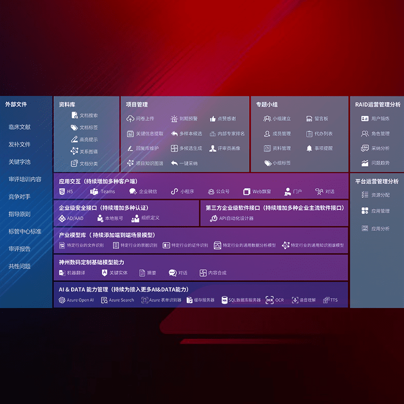 医疗器械产品上市前,,,要熟悉严格与繁复评审标准,,,整理分析监管机构指导文件中的海量信息。。。。企业急需一个智能化解决方案,,,,提升知识管理效率,,,,提高评审通过率,,以提升其市场竞争力。。。